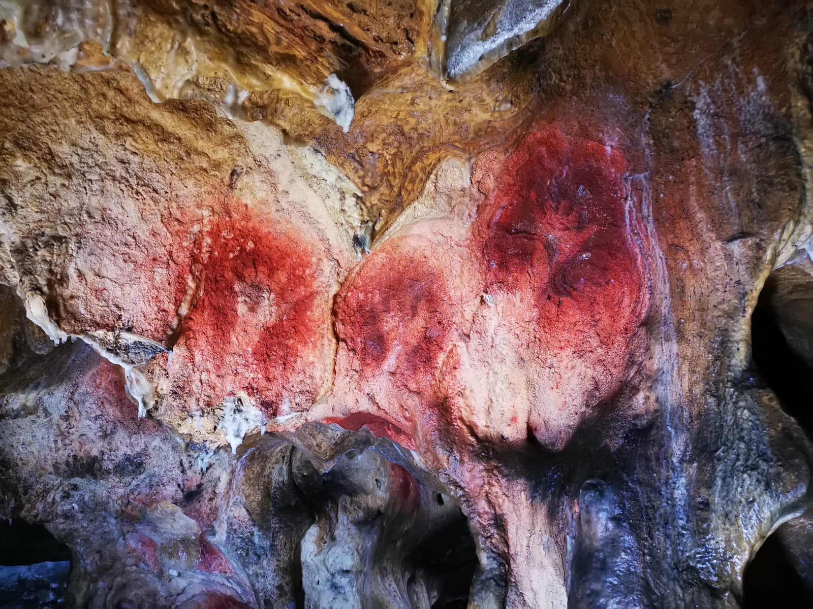 Le 11 juin 1906, alors qu’il connaît la grotte depuis près de trente ans, Félix Régnault découvre fortuitement trois mains rouges peintes en négatif sur la paroi d’un imposant relief stalagmitique au centre de la grotte.