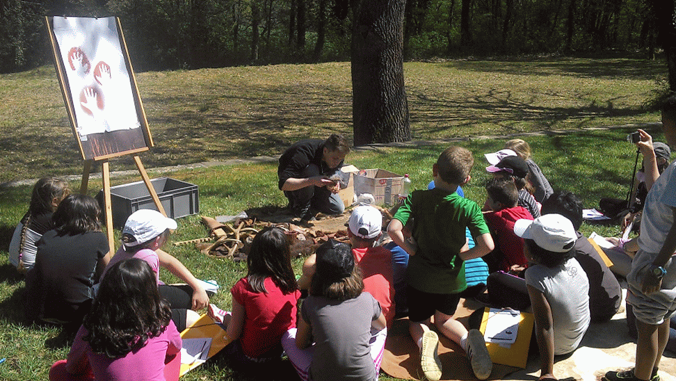 - Les pigments préhistoriques et les empreintes de mains. Quels pigments étaient utilisés à la Préhistoire ? Comment fabriquait-on la peinture ? Quelles sont les outils et techniques utilisées pour réaliser les dessins d’animaux ou les empreintes de mains ? Les participants repartent avec une empreinte de leur main.